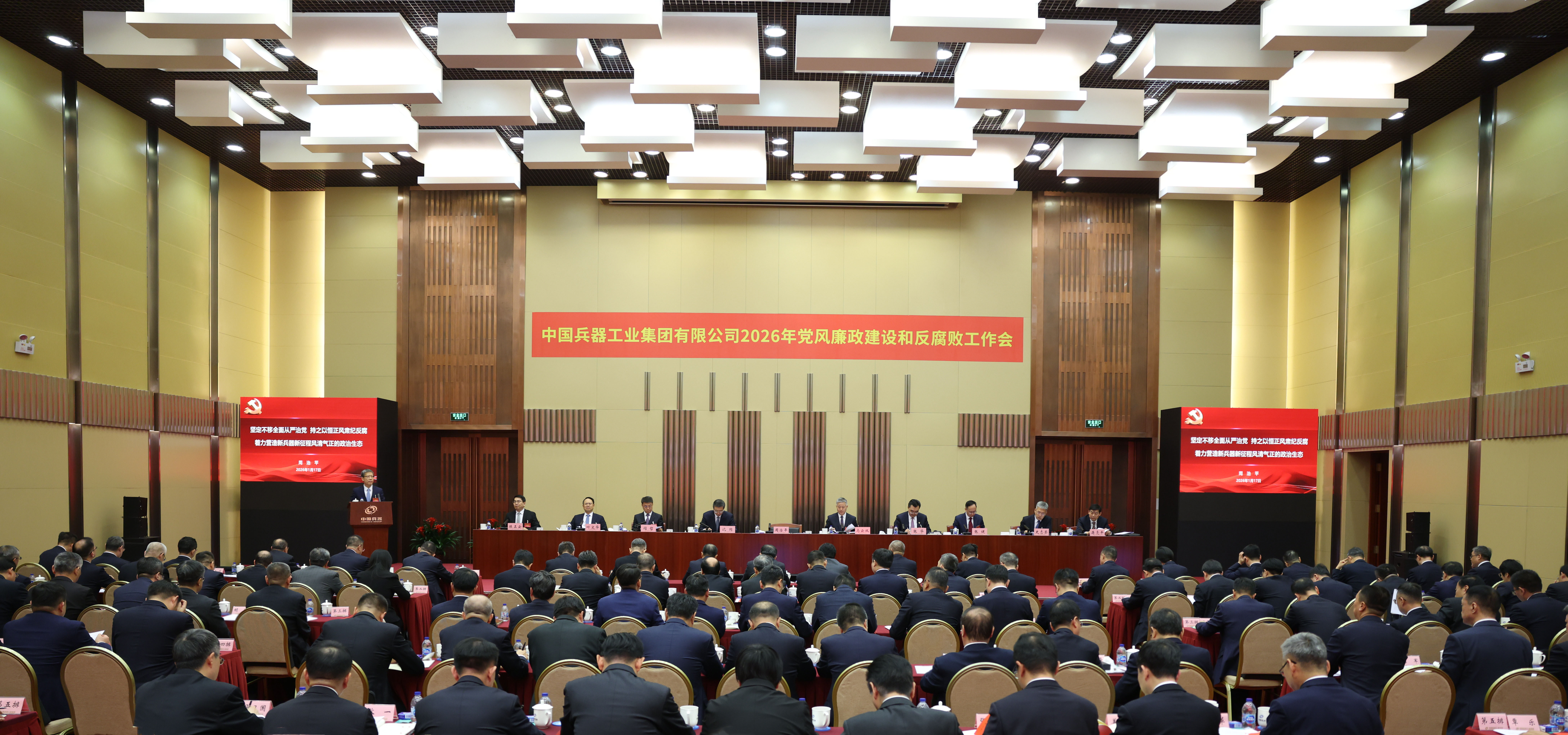 1月17日,中國兵器工業(yè)集團(tuán)有限公司召開2026年黨風(fēng)廉政建設(shè)和反腐敗工作會議,會議以習(xí)近平新時(shí)代中國特色社會主義思想為指導(dǎo),深入學(xué)習(xí)貫徹黨的二十大和二十屆四中全會精神,全面貫徹落實(shí)二十屆中央紀(jì)委五次全會精神,總結(jié)工作、部署任務(wù),以更高標(biāo)準(zhǔn)、更實(shí)舉措推進(jìn)全面從嚴(yán)治黨,為實(shí)現(xiàn)集團(tuán)公司“十五五”時(shí)期目標(biāo)任務(wù)提供堅(jiān)強(qiáng)保障。集團(tuán)公司黨組書記、董事長周治平作了《堅(jiān)定不移全面從嚴(yán)治黨,持之以恒正風(fēng)肅紀(jì)反腐,著力營造新兵器新征程風(fēng)清氣正的政治生態(tài)》的講話,并與集團(tuán)公司各部門、各子集團(tuán)和直管單位簽訂《黨風(fēng)廉政責(zé)任書》。駐集團(tuán)公司紀(jì)檢監(jiān)察組組長、集團(tuán)公司黨組成員陳正云傳達(dá)了二十屆中央紀(jì)委五次全會精神,通報(bào)了駐集團(tuán)公司紀(jì)檢監(jiān)察組2025年重點(diǎn)工作和查處典型案件暴露出來的問題并提出意見要求。集團(tuán)公司總經(jīng)理、黨組副書記馬云雙主持會議。